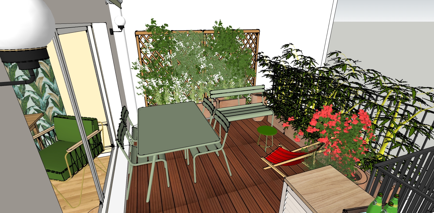 - Vue 3D du projet d’aménagement végétal de la terrasse.