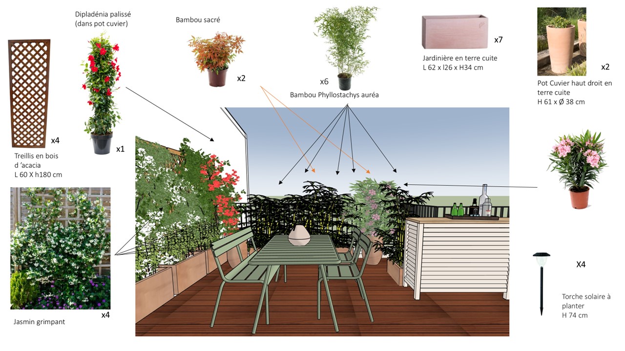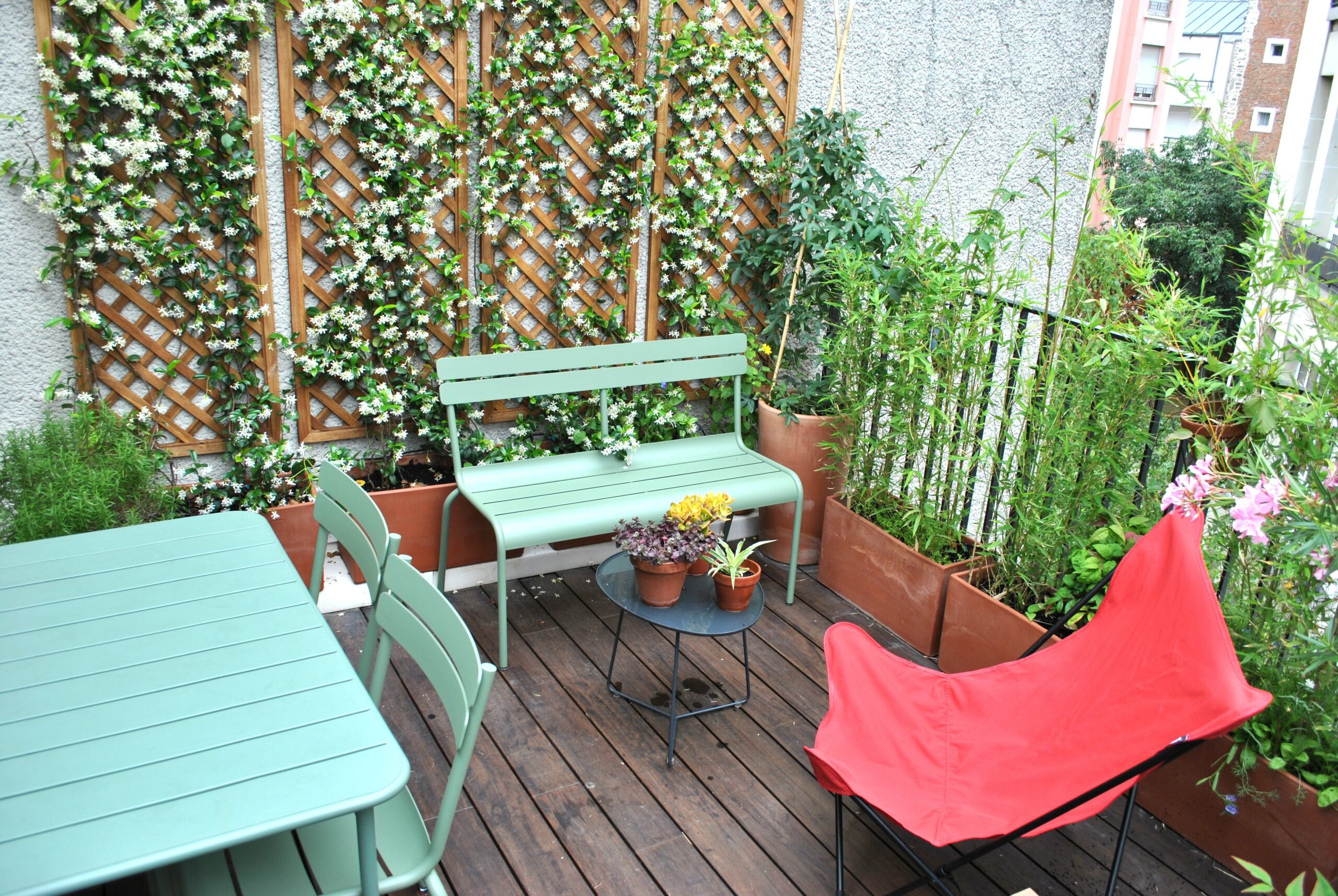 Une terrasse parisienne entre parfum de jasmin et légèreté des bambous