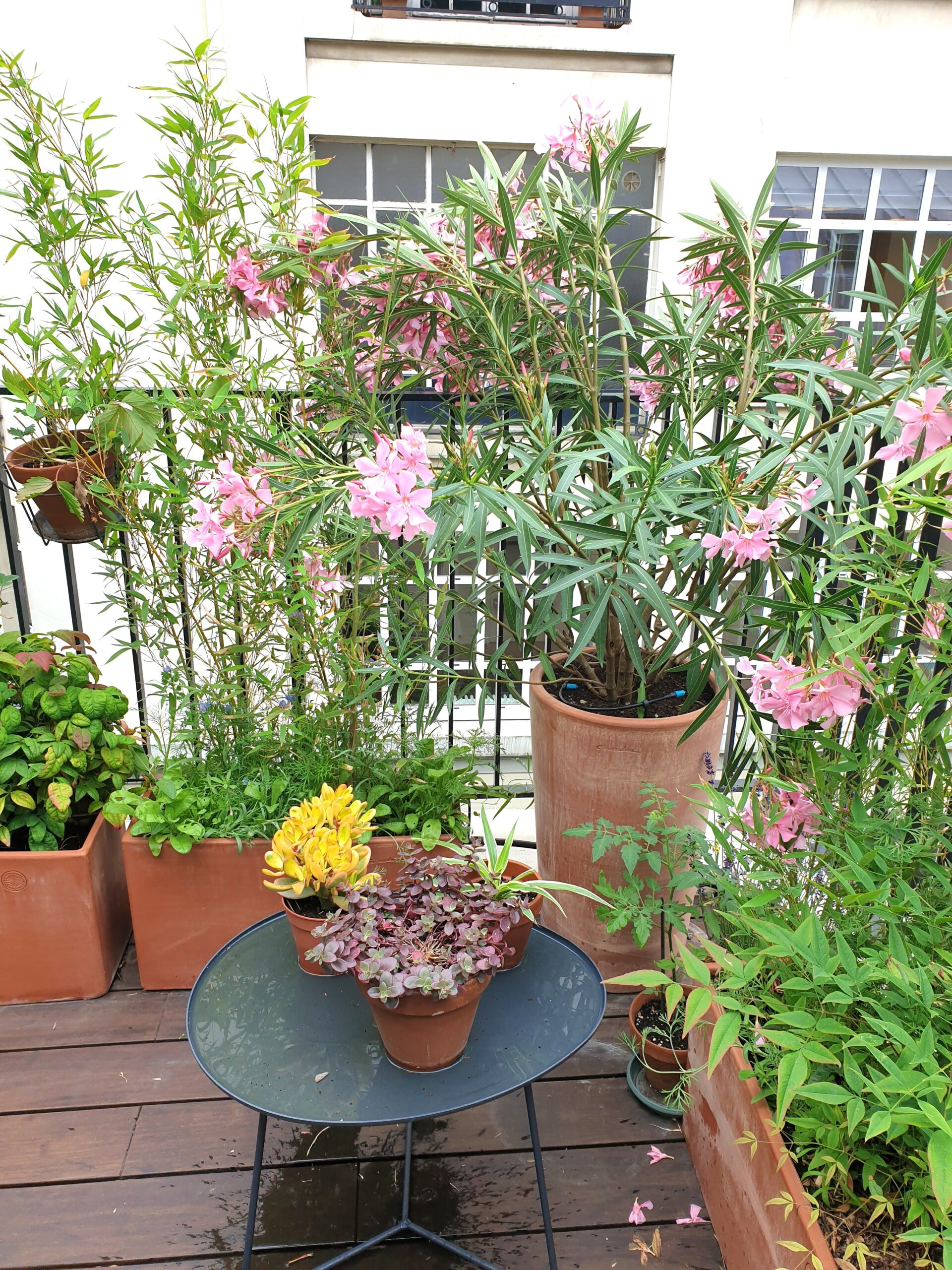 - Une terrasse parisienne végétalisée avec différentes plantes en pots.