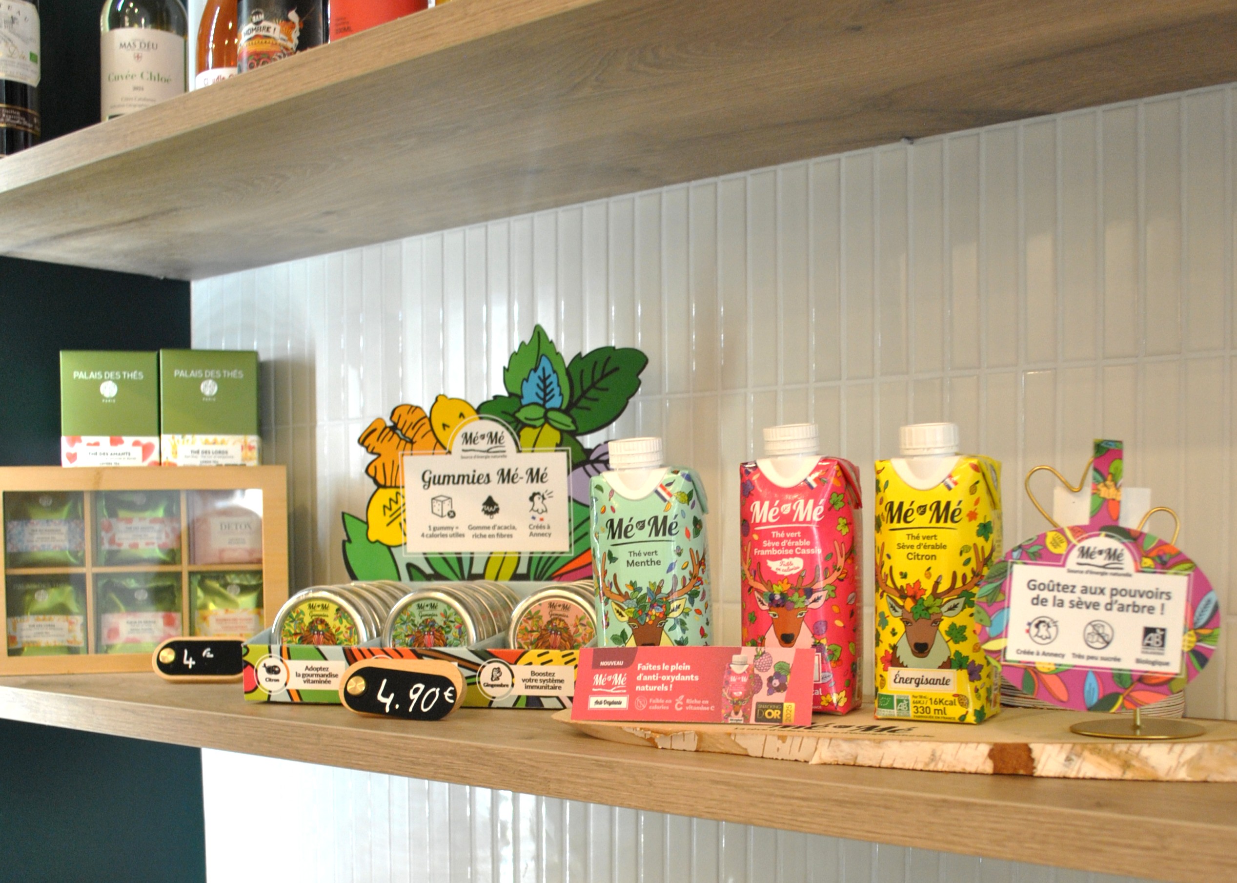 - Étagères murales avec présentation de boissons et produits dans un restaurant d’empanadas à Versailles